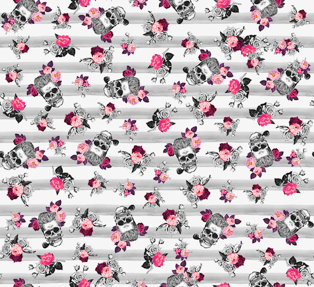 Baumwolldruck Timo Totenkopf auf Streifen grau/weiß