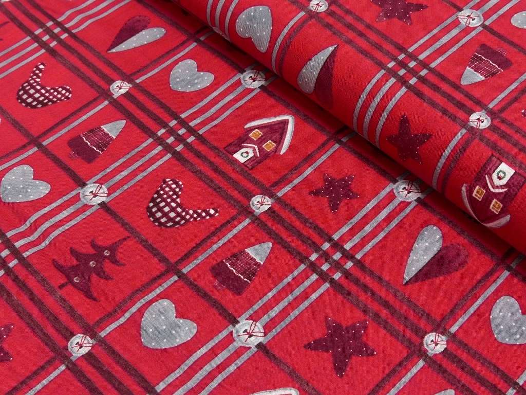 Baumwolle Weihnachten Quadrate auf rot