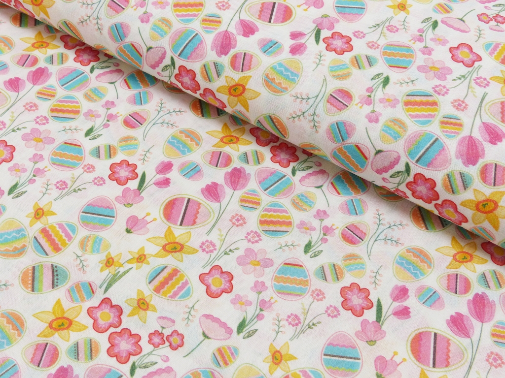 Baumwolldruck Ostern Eier, Narzissen