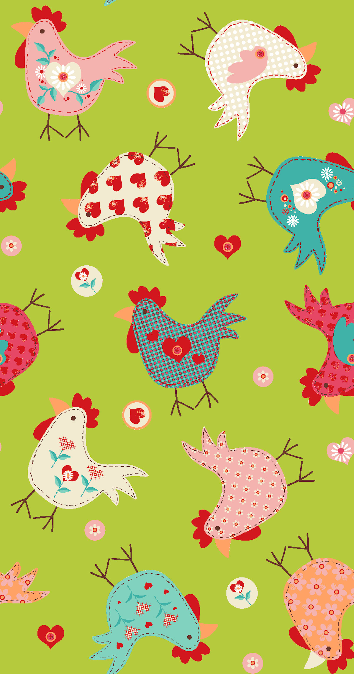 Baumwolldruck Hühner grün