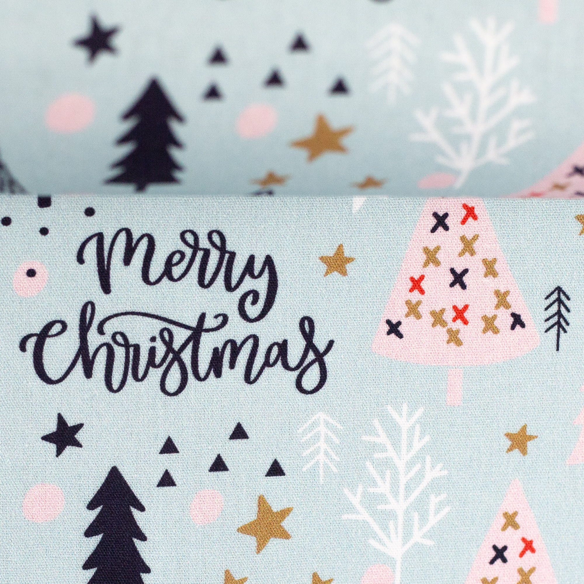 Baumwolldruck Noel Merry Christmas hellmint 349261