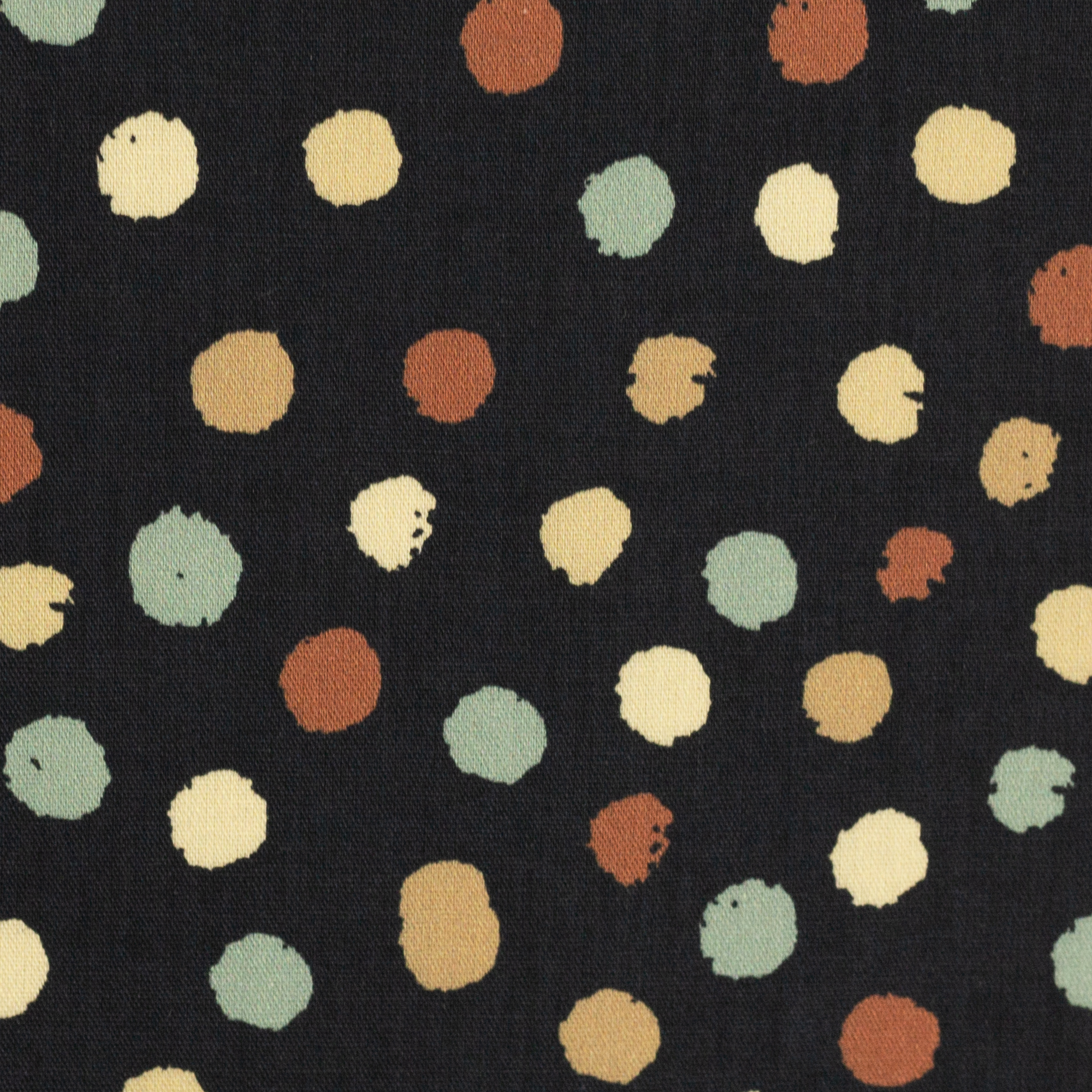Baumwolldruck Happy Harvest bunte Tupfen auf schwarz