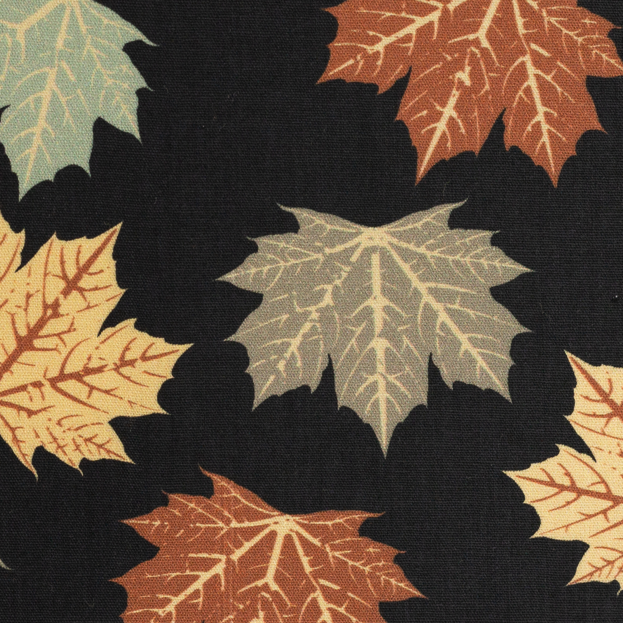 Baumwolldruck Happy Harvest Ahornblätter auf schwarz